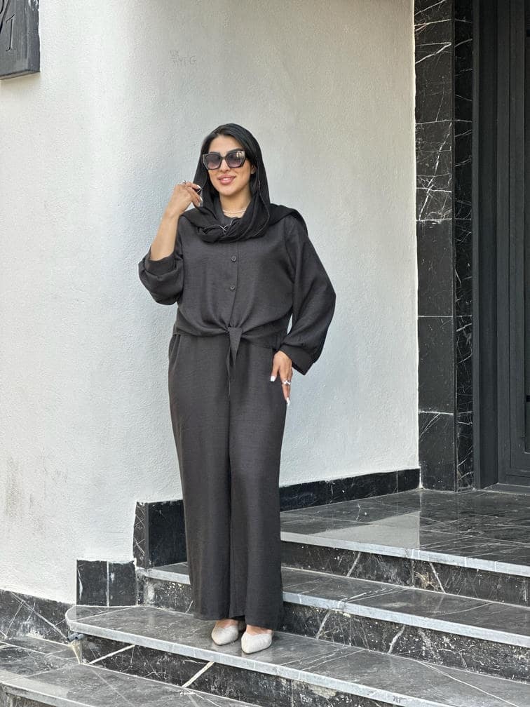 ست مانتو دو تیکه جیلنا شامل اورال و رویه گرهای، انتخابی شیک و خاص برای استفاده روزمره و مجلسی.